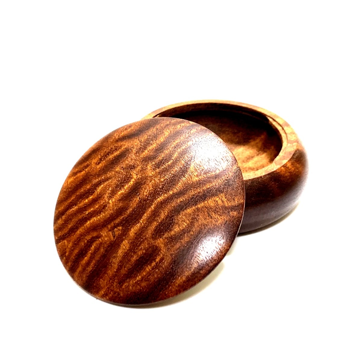 サペリ・マホガニーのリボン杢の香合 80mm 極上 まんじゅう型 1タッチ式