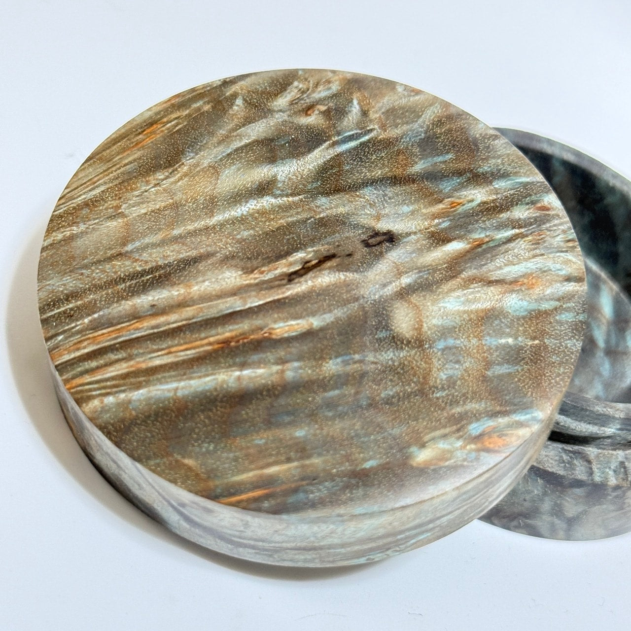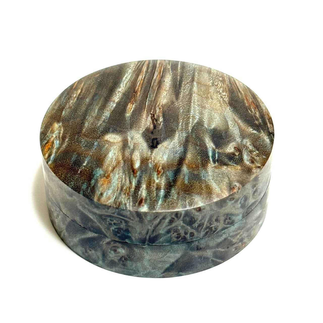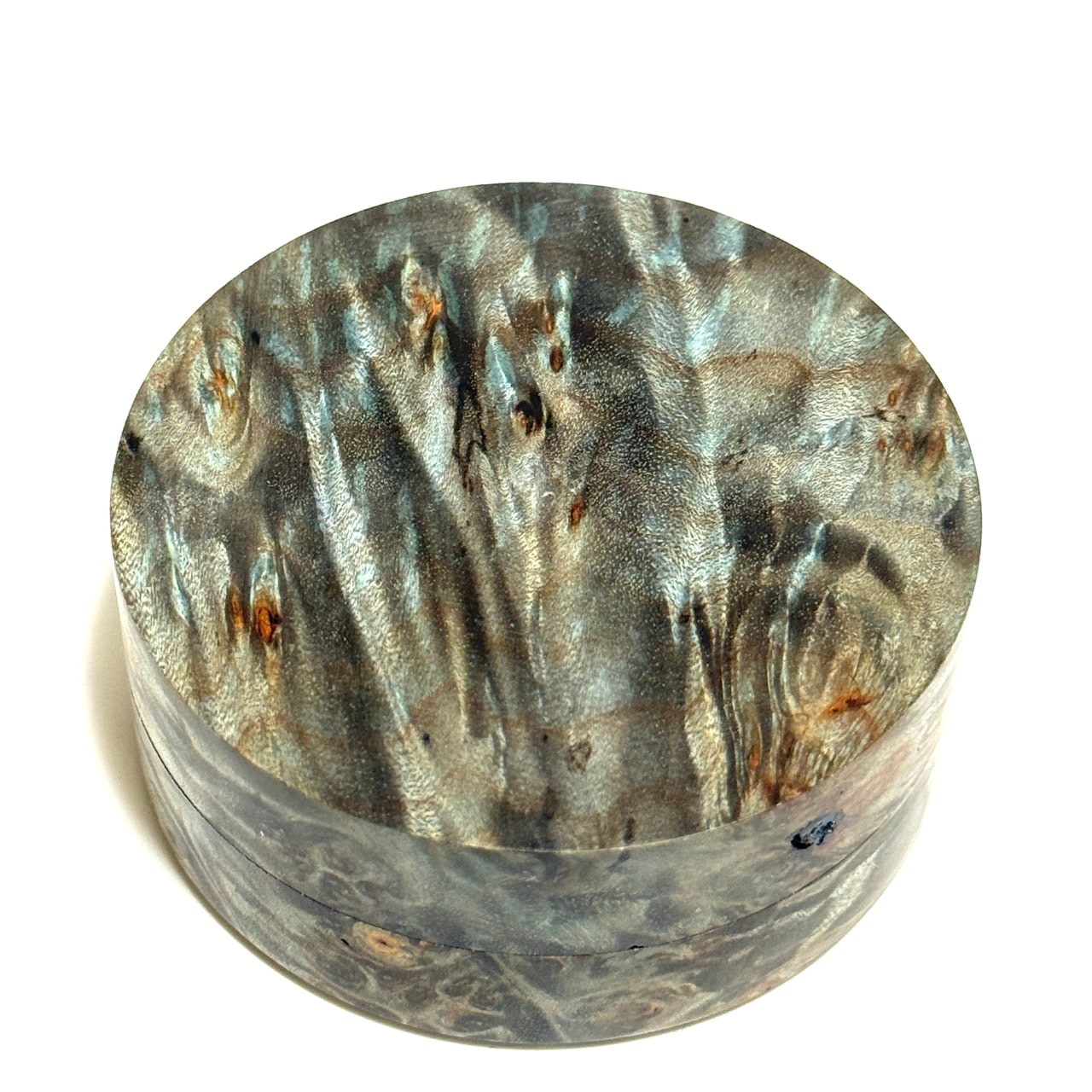 スタビライズド・ウッドの香合(楓瘤) ターコイズ色 70mm 切立型 1タッチ式