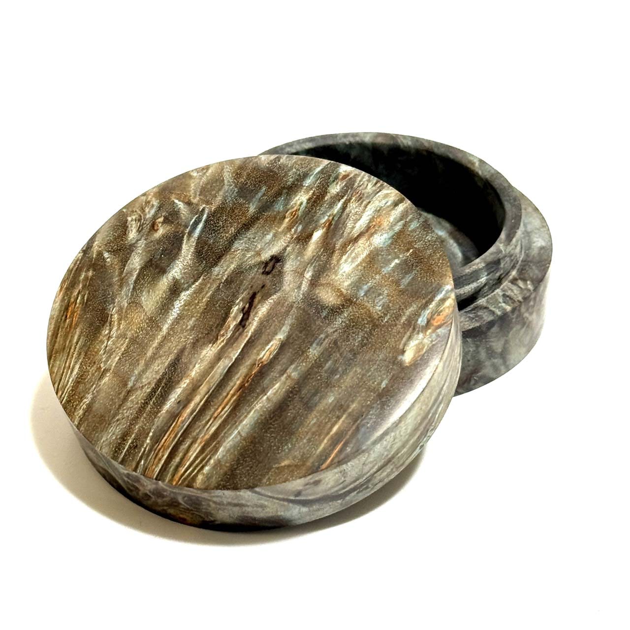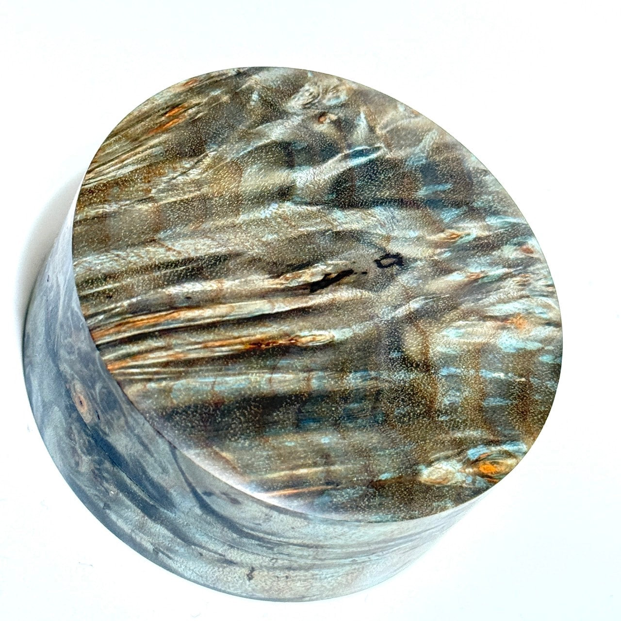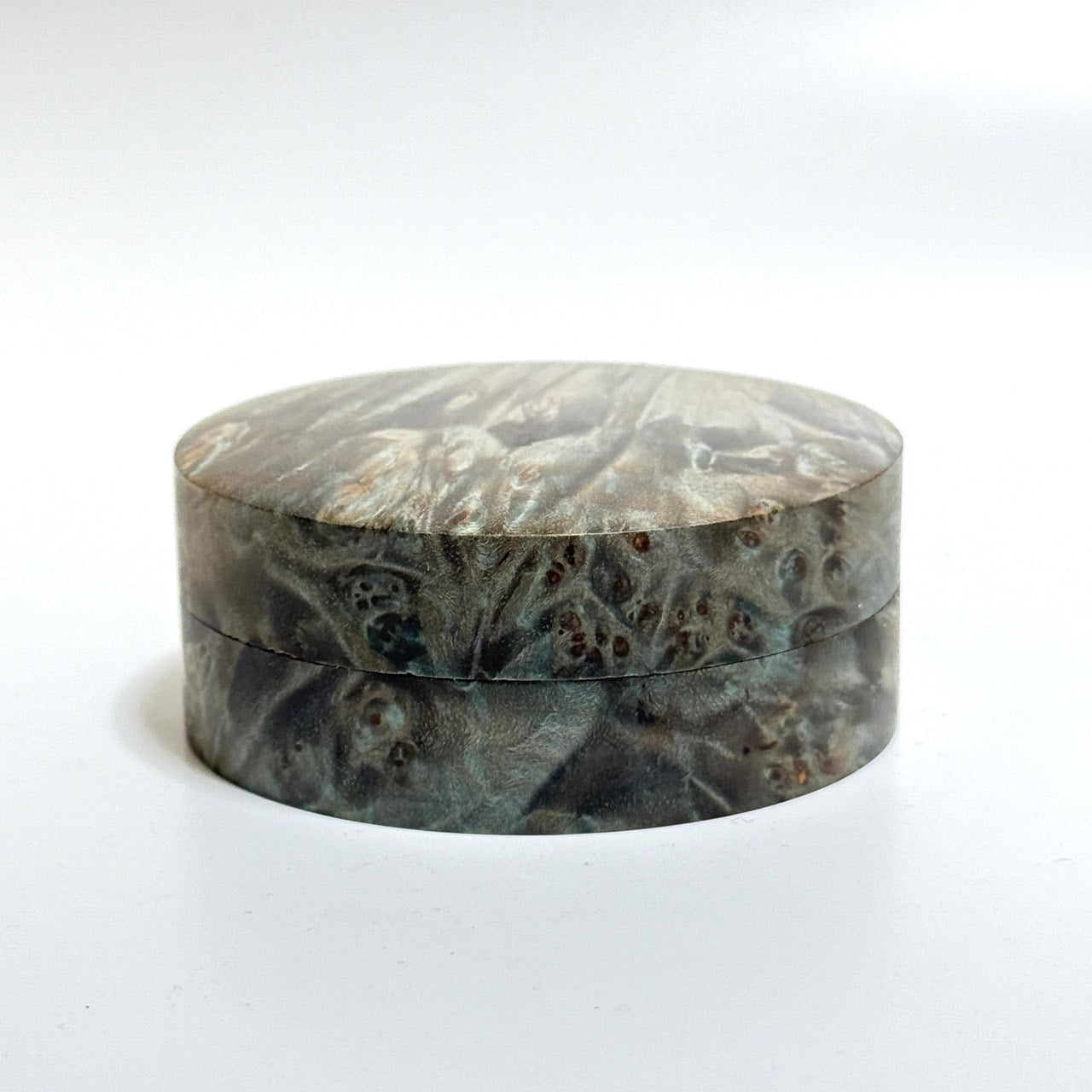 スタビライズド・ウッドの香合(楓瘤) ターコイズ色 70mm 切立型 1タッチ式