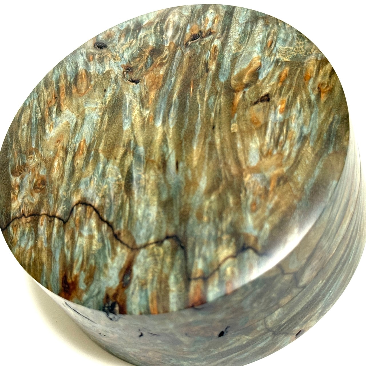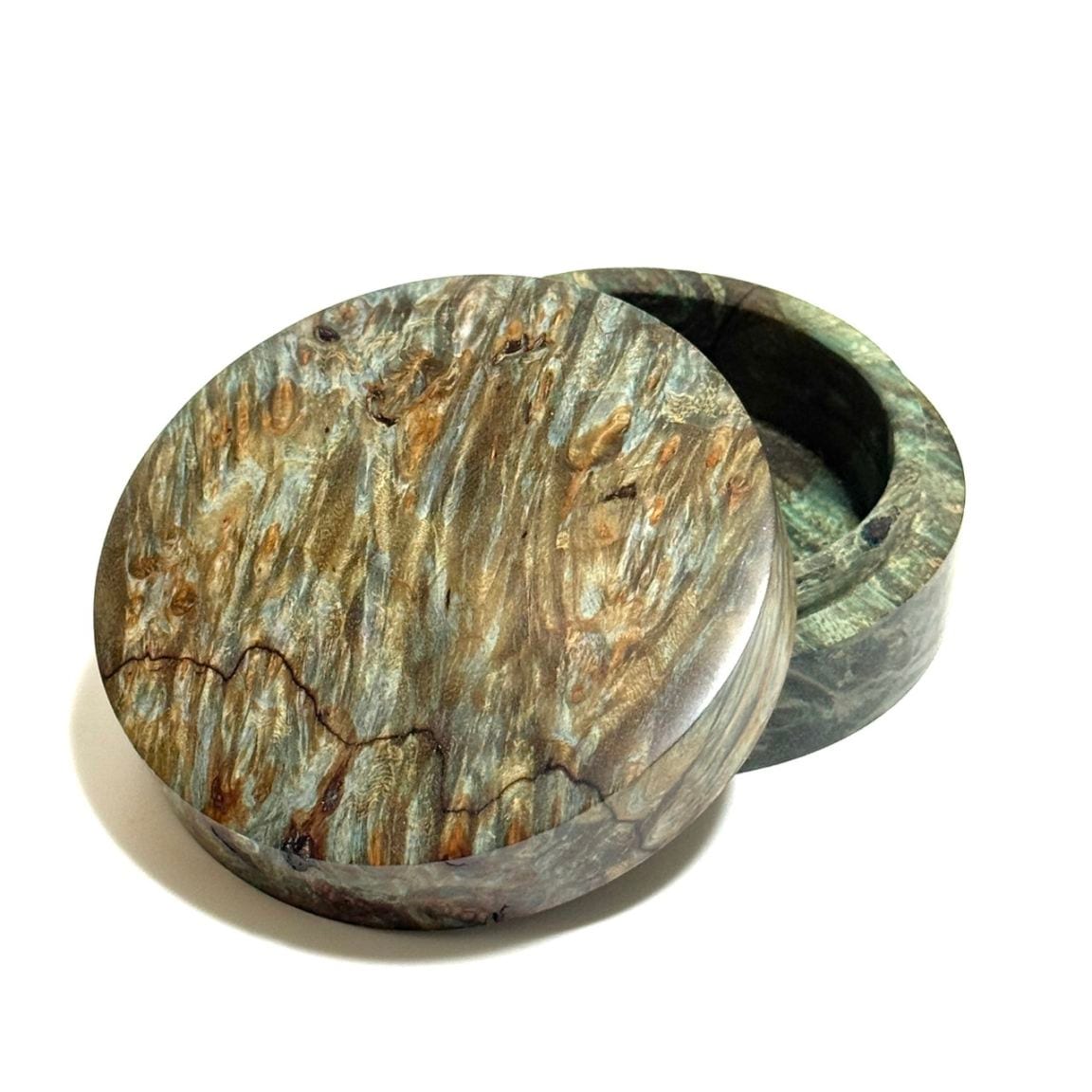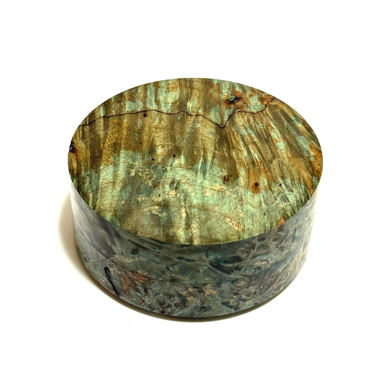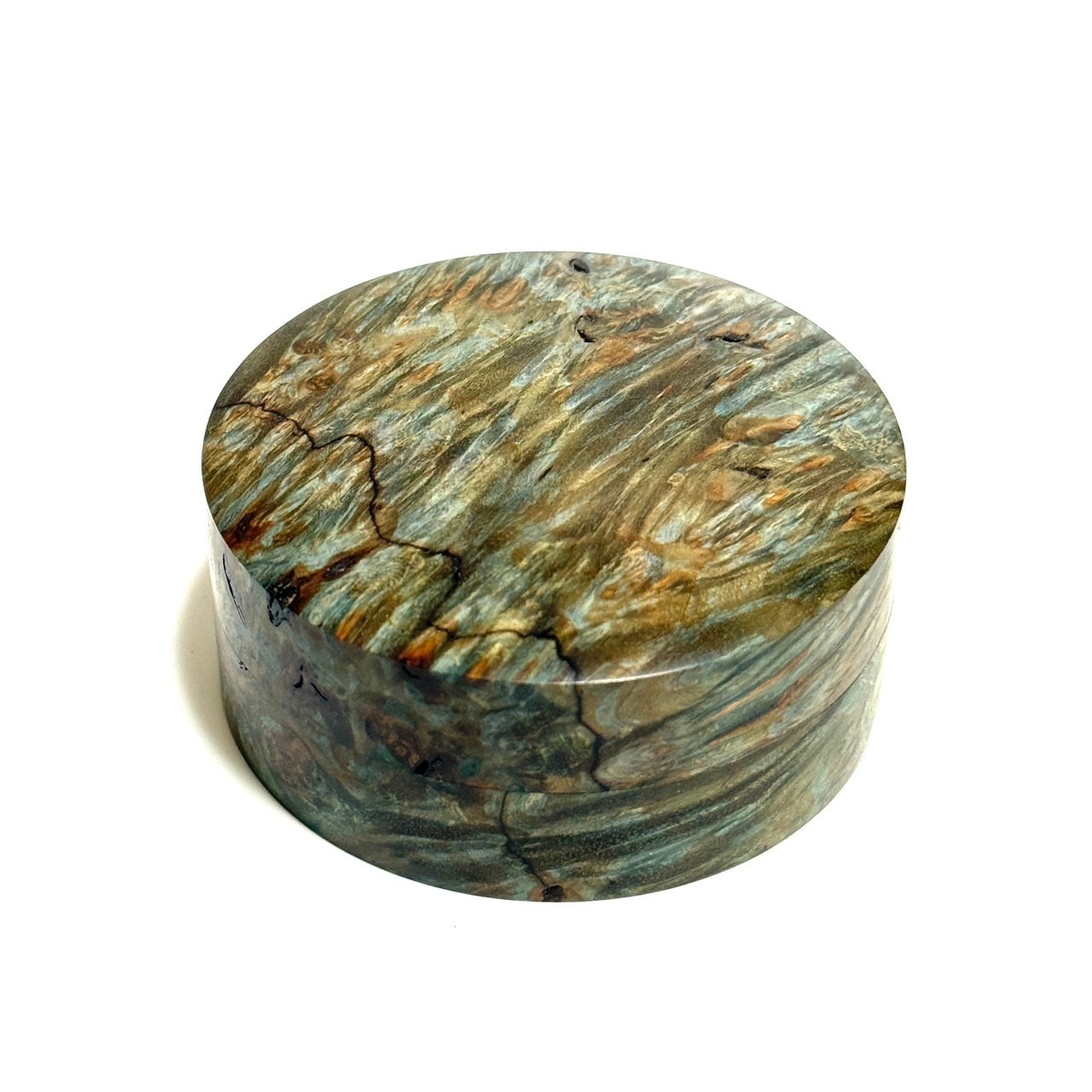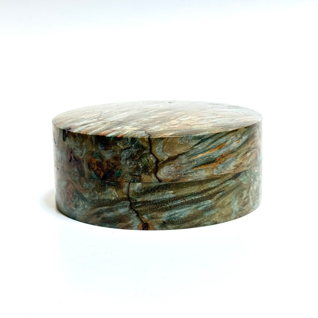 スタビライズド・ウッドの香合(楓瘤) 緑青色 80mm 切立型 1タッチ式