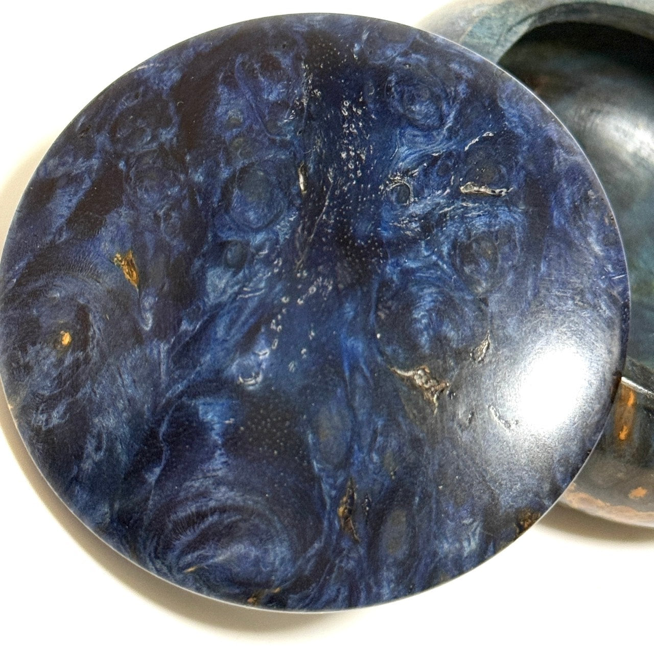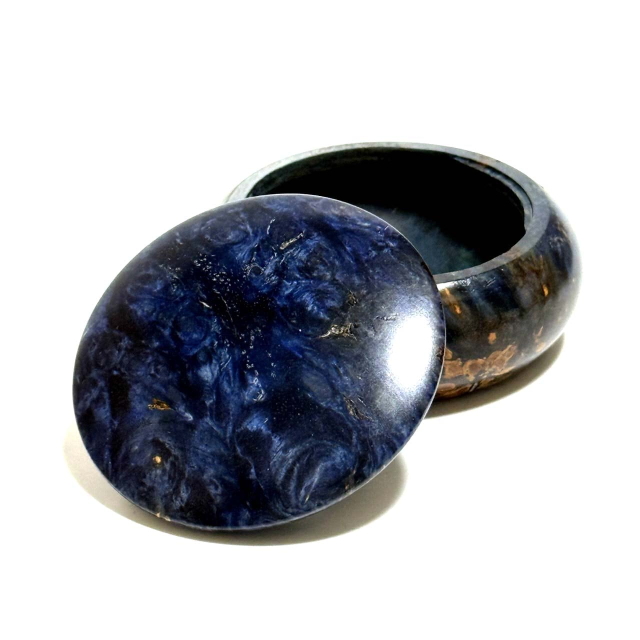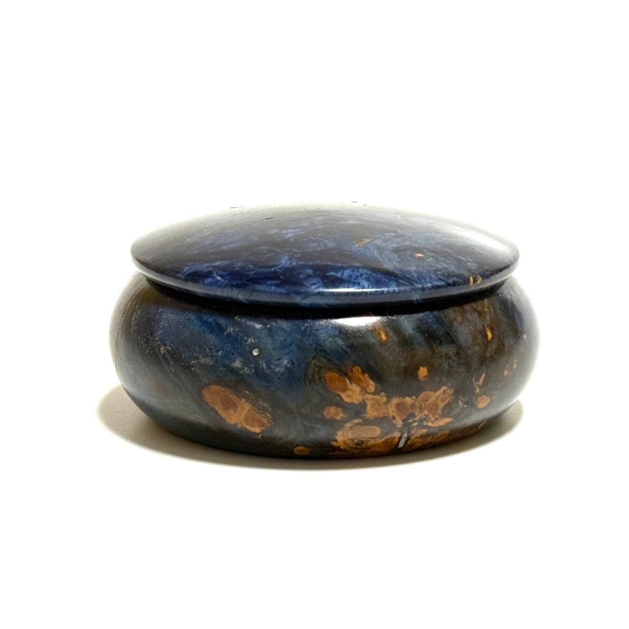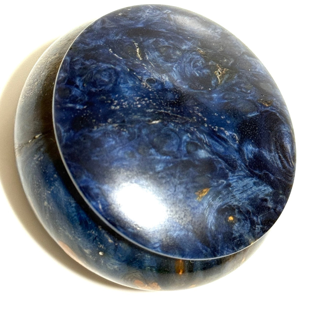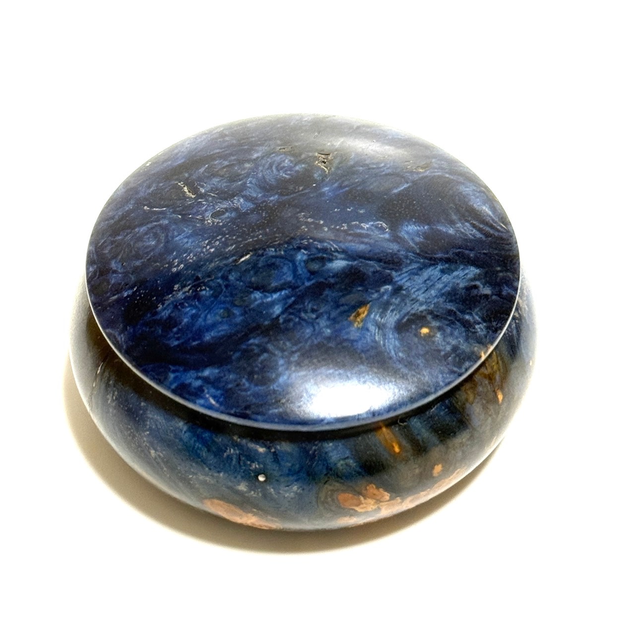 スタビライズド・ウッドの香合(花梨瘤) 紺碧色 70mm まんじゅう型 1タッチ式