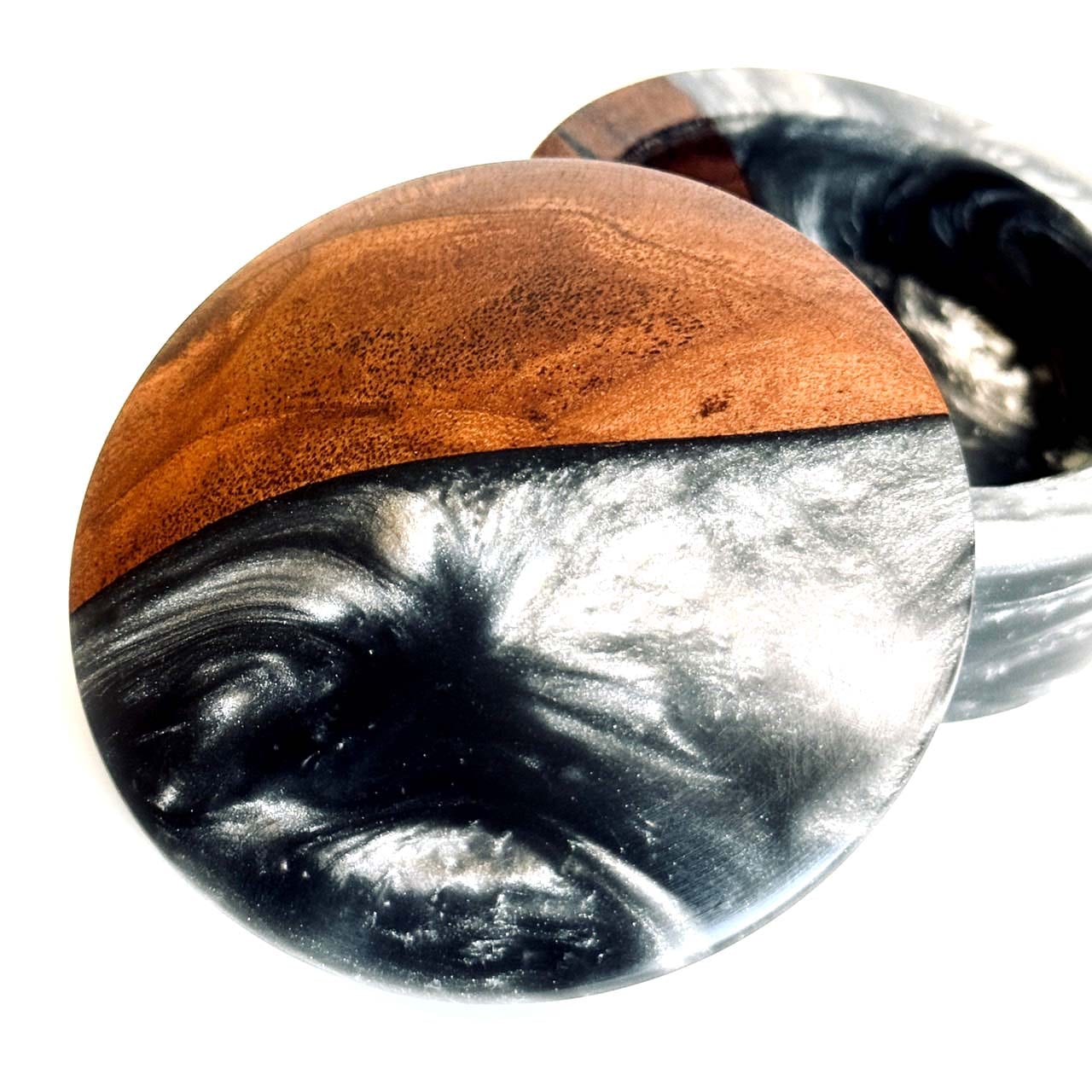 その木目の凹凸を包み込むように、銀白のレジンが滑らかに溶け込み、まるで霧立つ水面が岩肌に寄せる波のような情景を描き出します。
