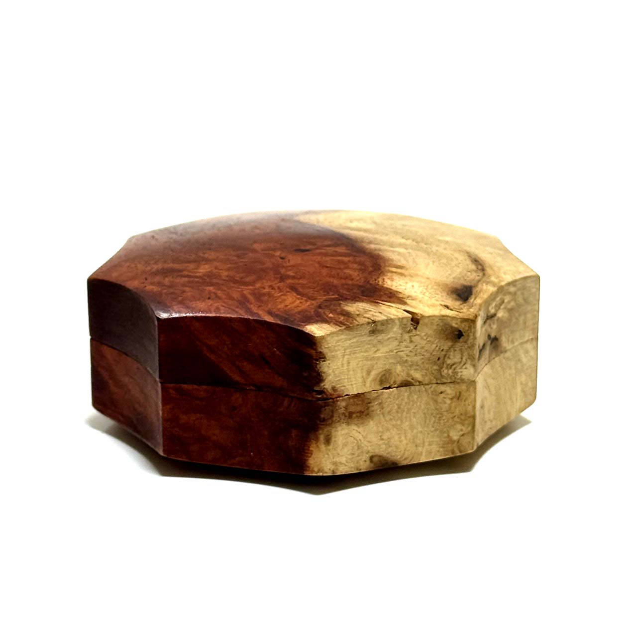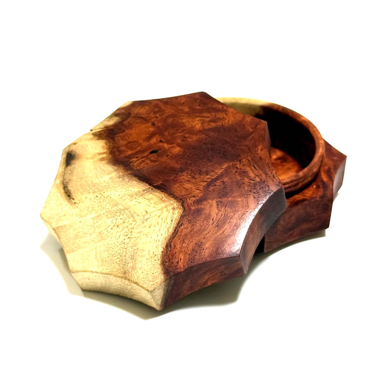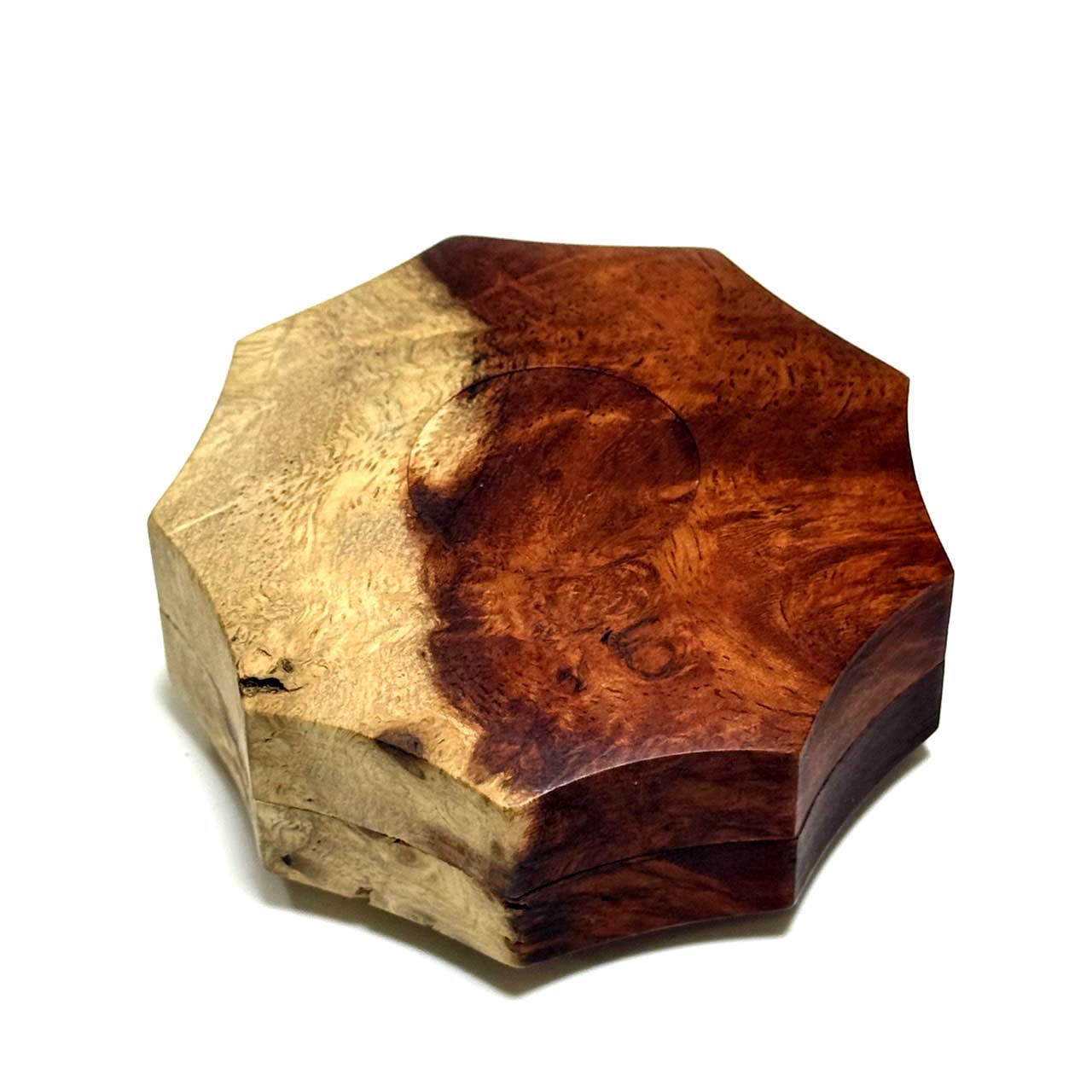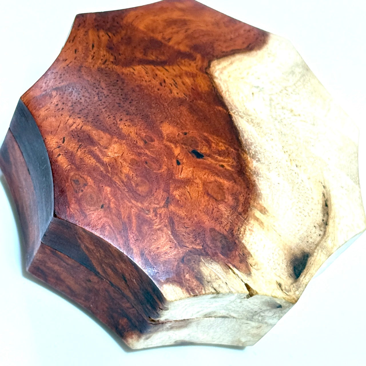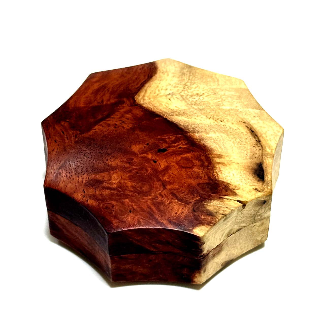九拝香合 花梨瘤紅白杢の香合 70mm 九角形型 1タッチ式 極上