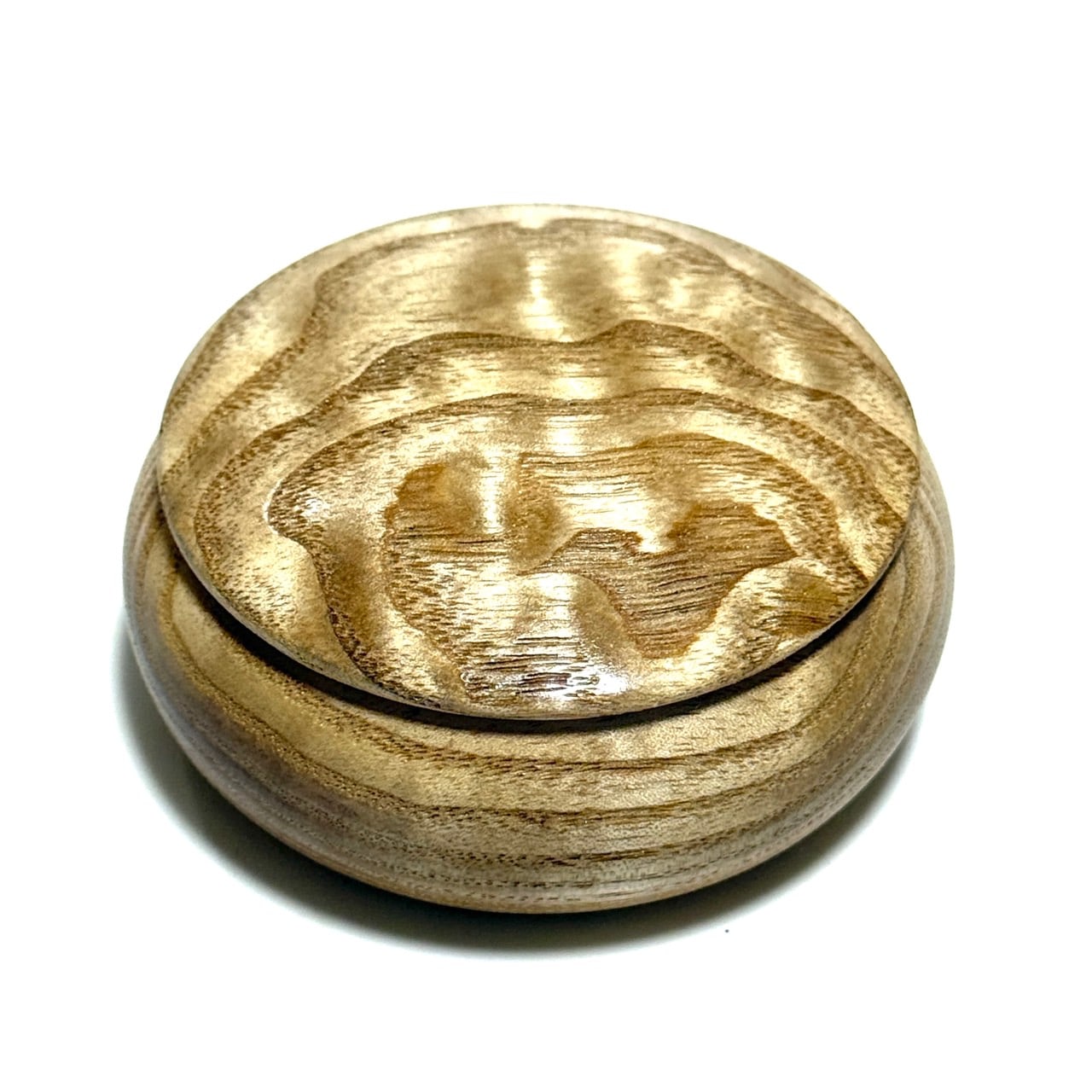 塩地玉杢の香合 70mm まんじゅう型 1タッチ式