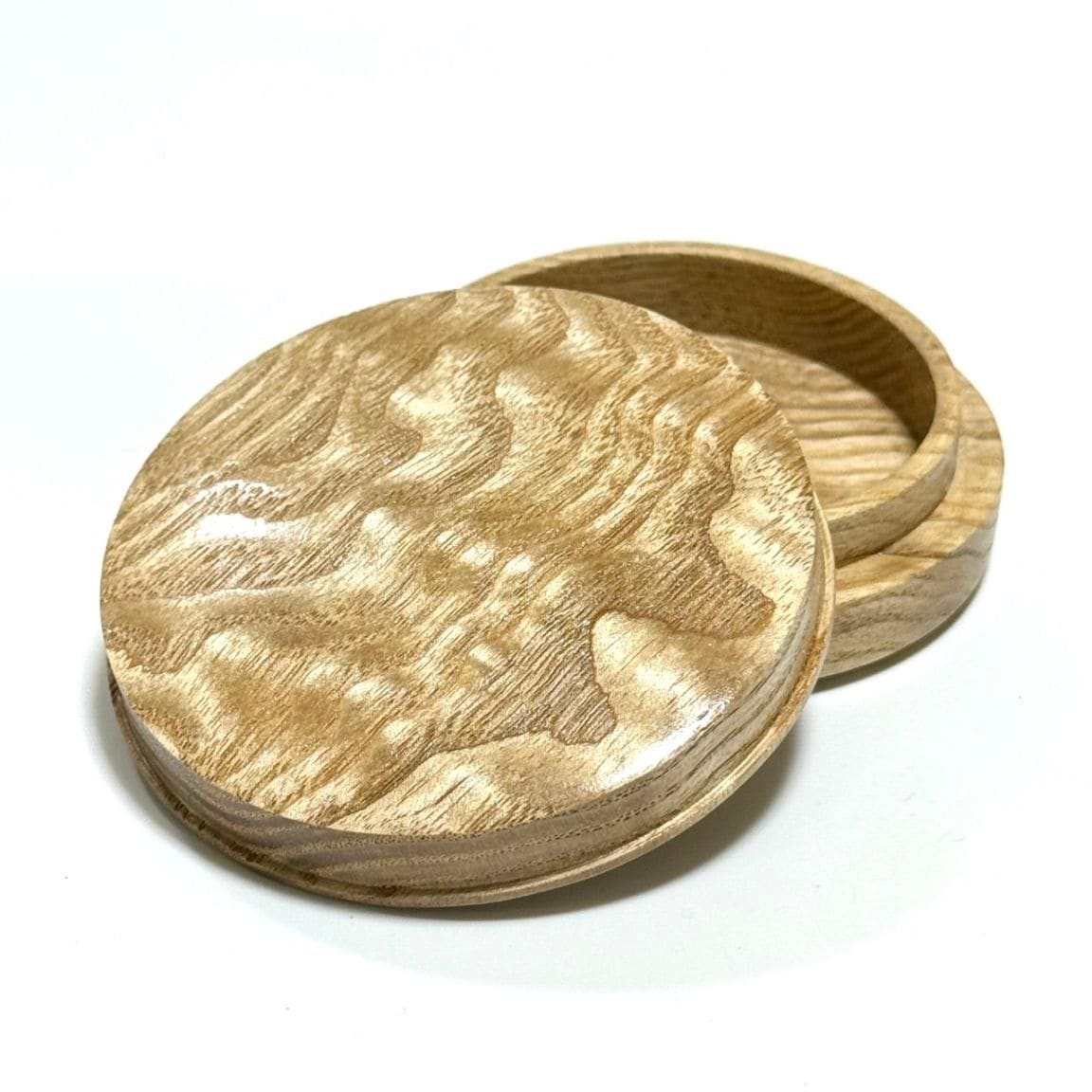 塩地玉杢の香合 70mm 佛杢型 1タッチ式