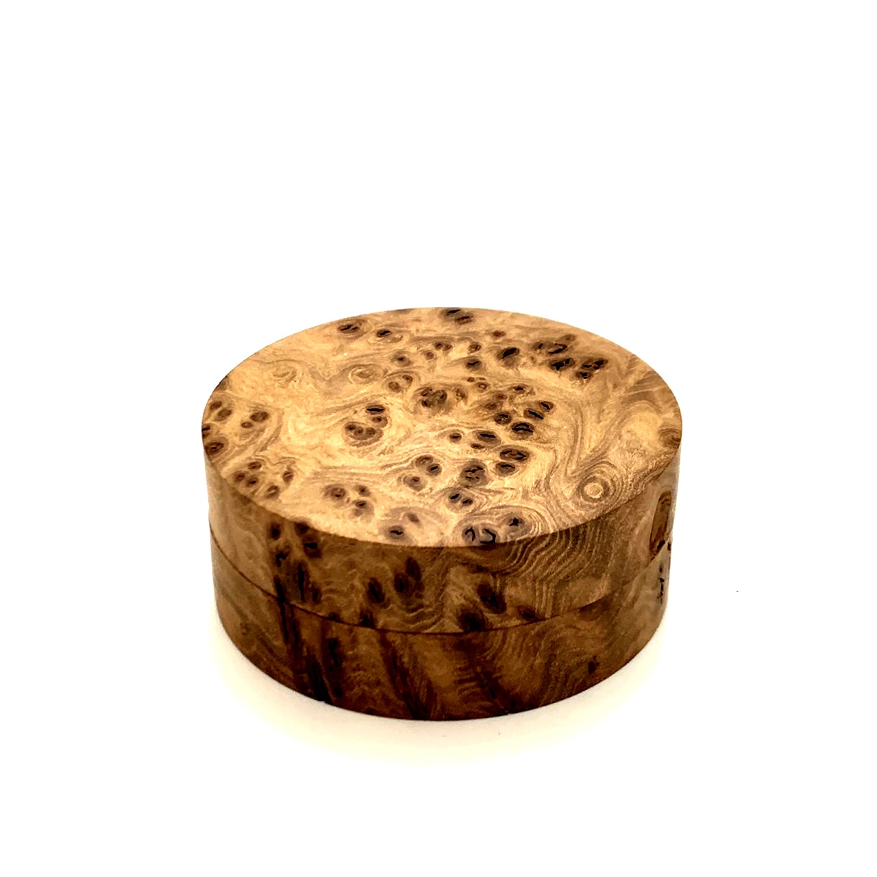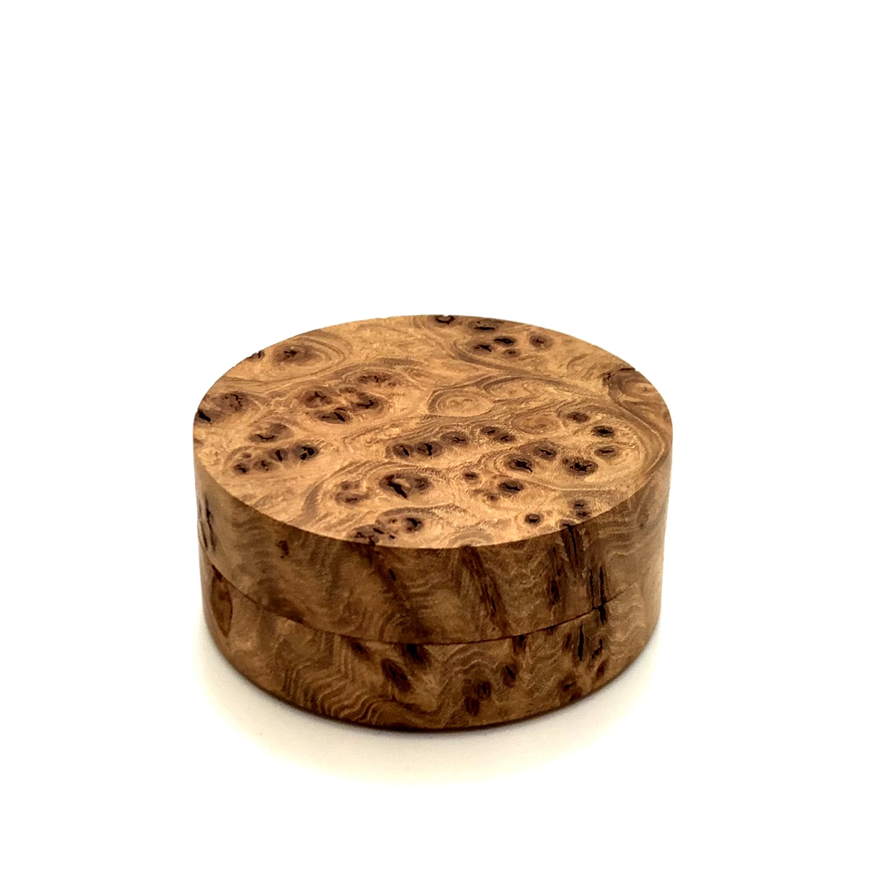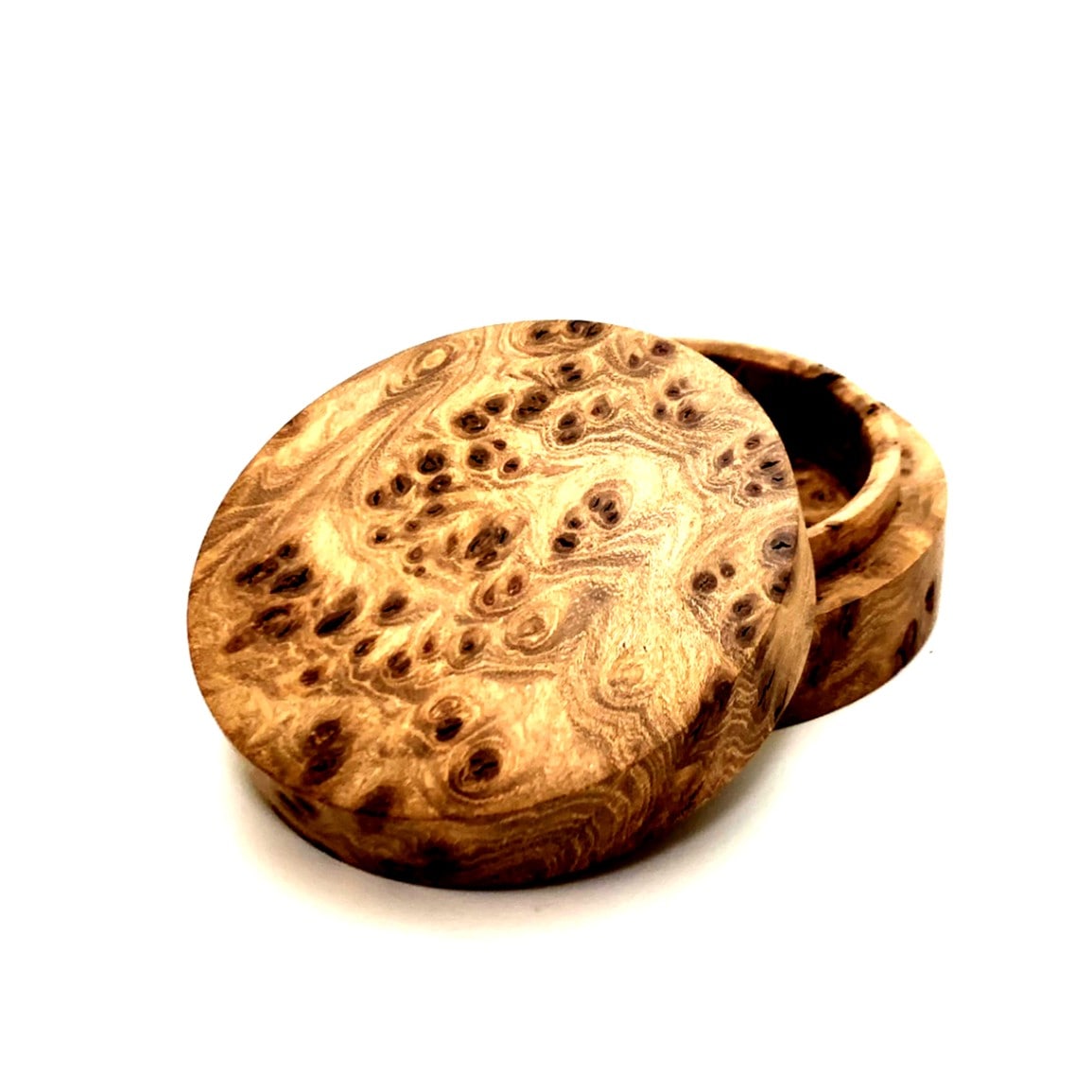 本欅瘤杢の香合 70mm 極上 切立型 1タッチ式