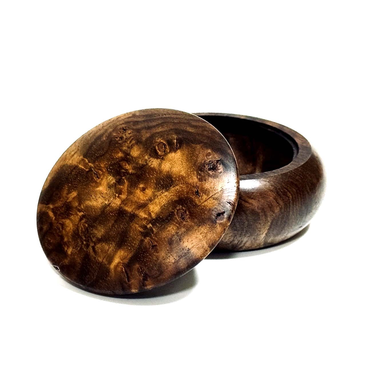 鬼胡桃瘤杢の香合 60mm まんじゅう型 1タッチ式 極上