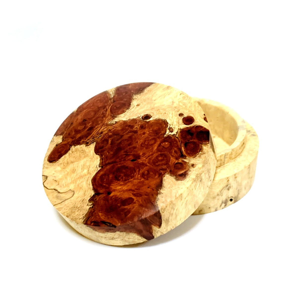 花梨瘤は白太と呼ばれる木の外側の部分が白く、芯から白太までの赤身部分に鳥眼杢があらわれています。
