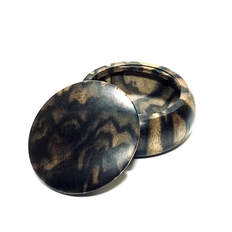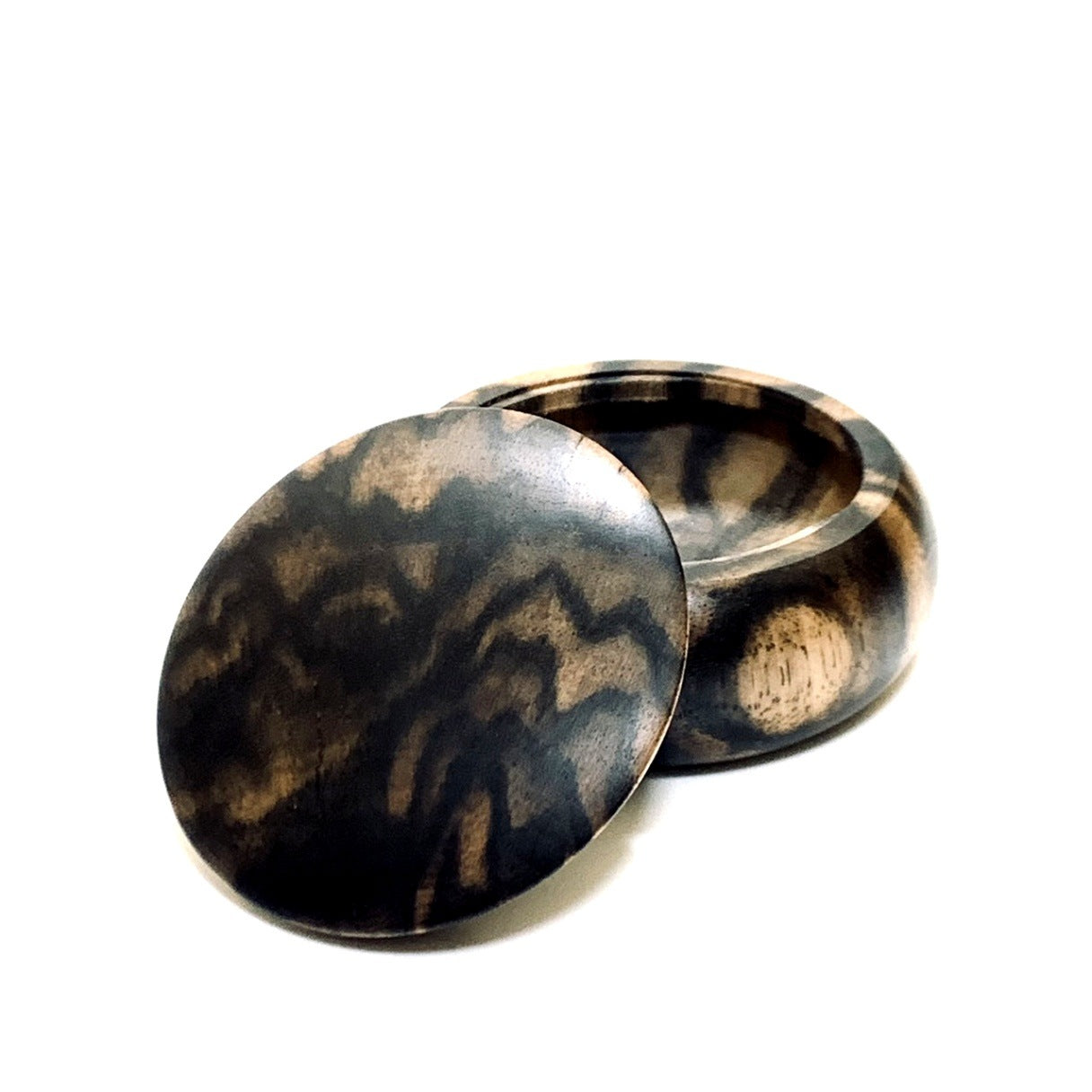 黒柿の香合 孔雀杢 60mm 極上 まんじゅう型 1タッチ式